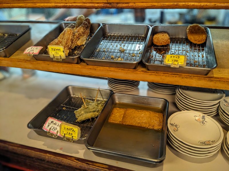 店内でトッピングを選びながら注文するセルフスタイル。うどんを注文 → トッピング選ぶ → 会計 → 着席という流れです。何を注文するか事前に決めておくとスムーズです。