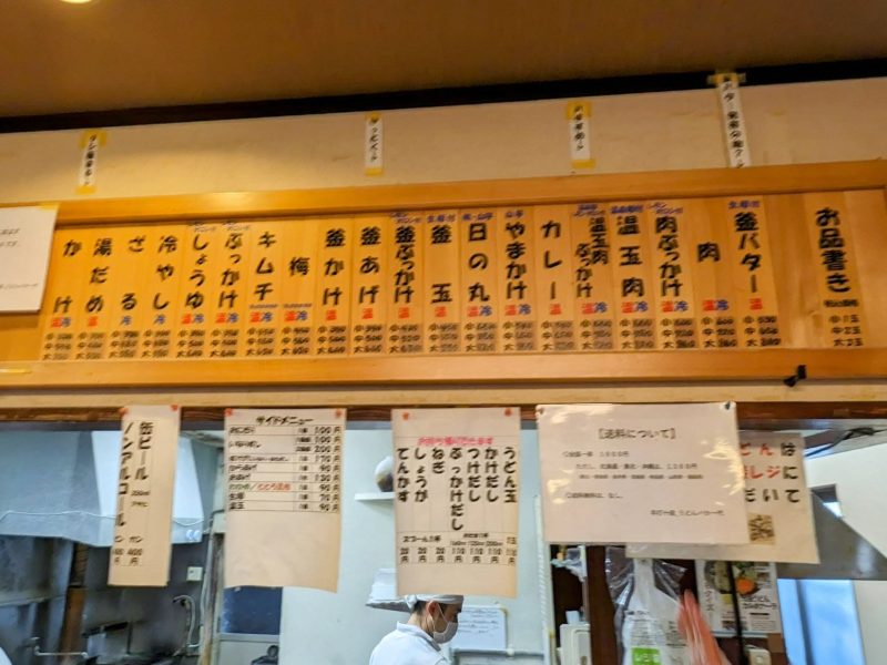 うどんメニューはとにかく豊富。シンプルなかけうどんや冷たいぶっかけから、ちょっと変わり種までいろいろ。