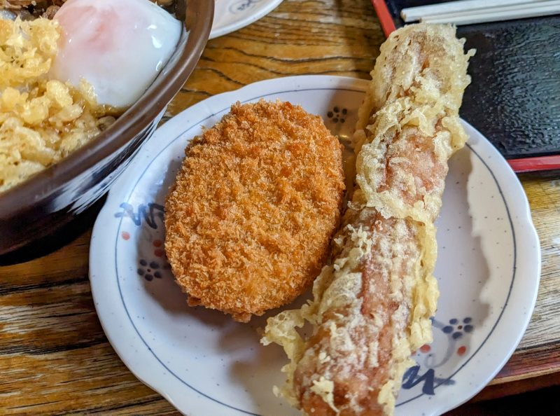 トッピングしたコロッケもちくわ天もサクサク食感で美味しかったです。