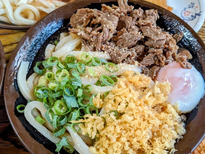 甘辛く炊いた牛肉がどっさり乗った冷たいぶっかけ。麺のコシがしっかりしていて、肉の旨味とだしのキレが絶妙にマッチ。ボリュームもあるので、ガッツリ派におすすめです!