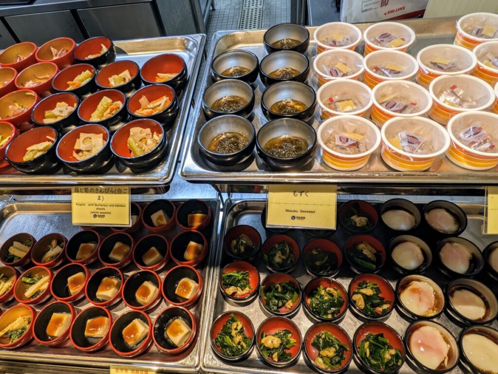 ご飯と一緒に食べたい小鉢のお惣菜。小分けされているため、少しづつ色々な種類を食べられます。永平寺のごま豆腐は福井ならではのメニューなので、ぜひ食べてみてください。