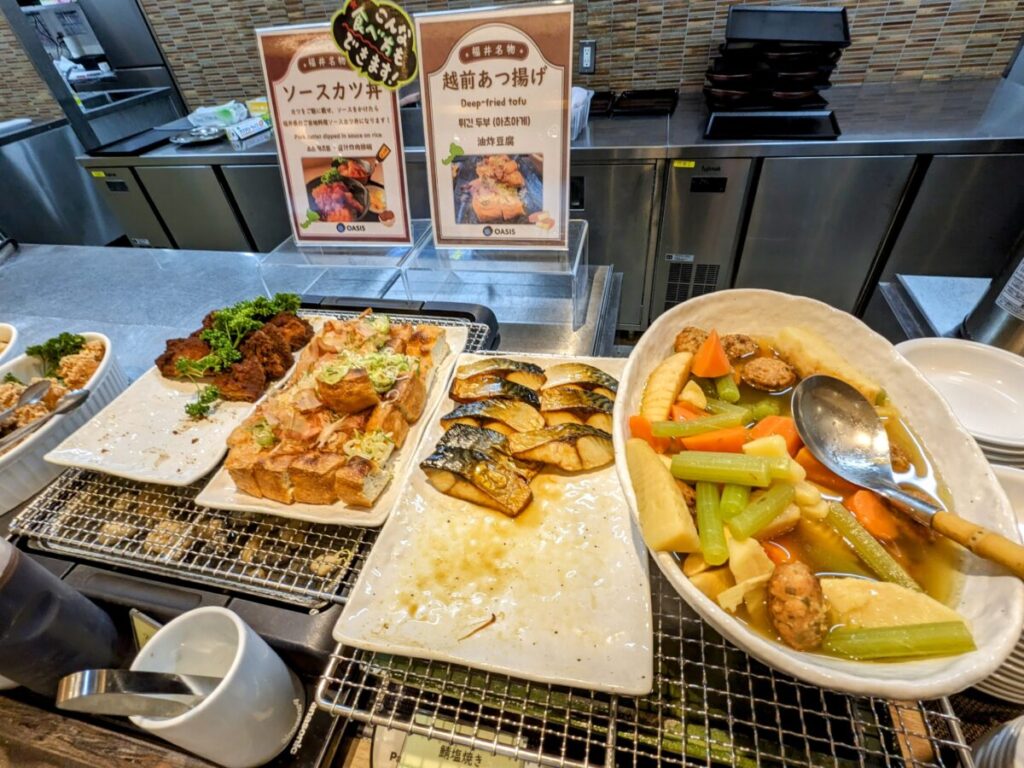 ソースカツや越前あつ揚げ、越前そばなど、ドーミーインの朝食を食べれば、福井のご当地グルメを一通り味わうことができます。