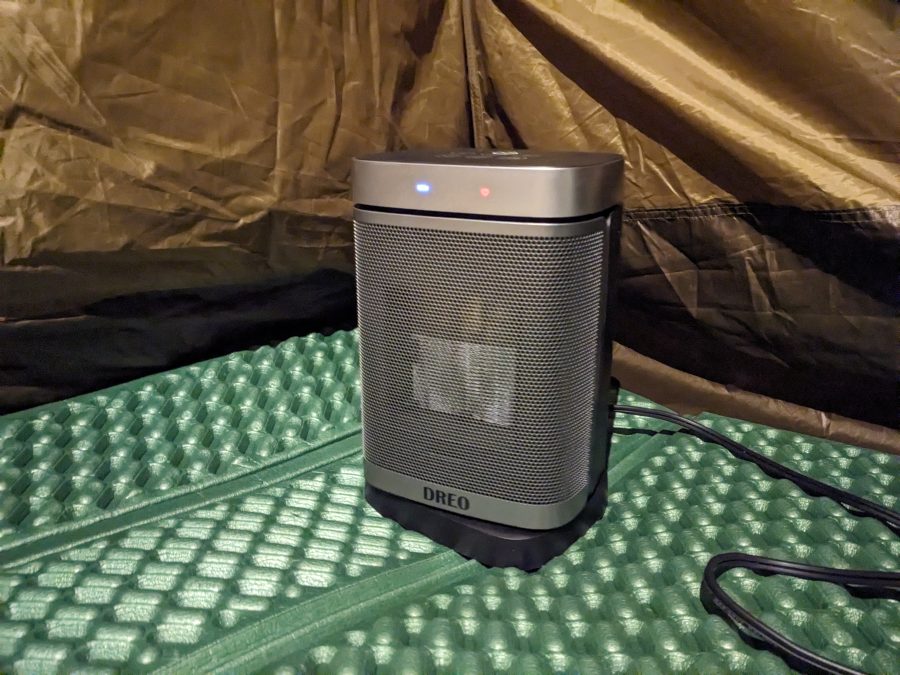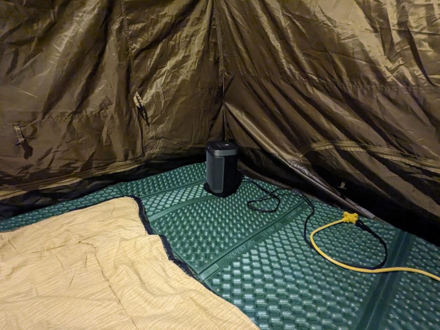 早速、11月のキャンプ場で試してみました。足元に置き、室内全体を暖めるよう首振設定で稼働。