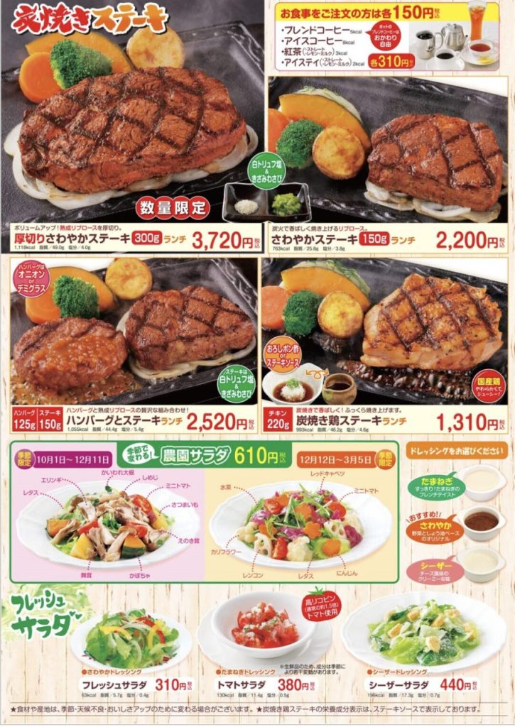 ハンバーグが有名なさわやかですが、リブロースのステーキも販売しています。