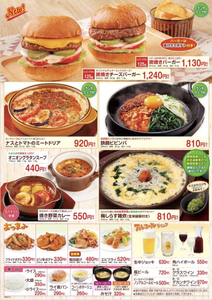 お得なランチメニュー(2024年10月1日から料金改定)