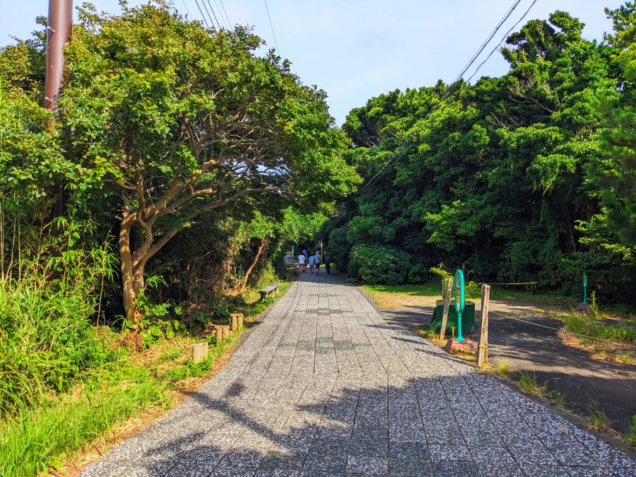 崖の先端に向かう最後の部分のみ、急な階段になっています。階段の上り下りが難しい人やベビーカーを押しているなどの場合は、石廊埼灯台までで折り返すこととなります。