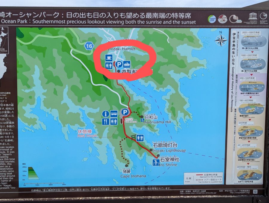 それでも、石廊崎の絶景とともに日の出や夕暮れを見たい!という人は、遊覧船の駐車場に車を停めて行くことができます。