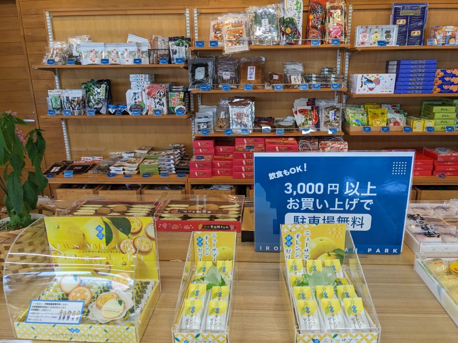 伊豆の名産の金目鯛や伊勢海老、ニューサマーオレンジなどを使ったお菓子や乾物などのお土産も販売しています。