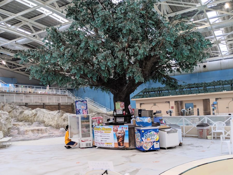 波のプールの脇にアイスやかき氷、ドリンクを販売する売店があります。アイスが、飛ぶように売れ、完売しては補充してを繰り返していました。