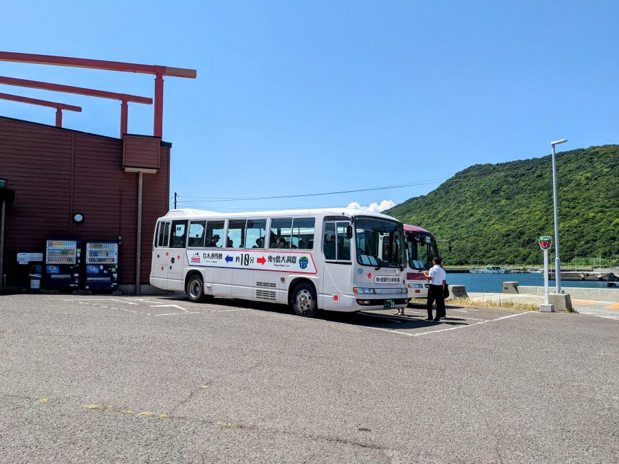 おにの館に着くと、鬼ヶ島大洞窟行きのバスが来ていますので、バスのチケットをおにの館で購入し乗り込みましょう。