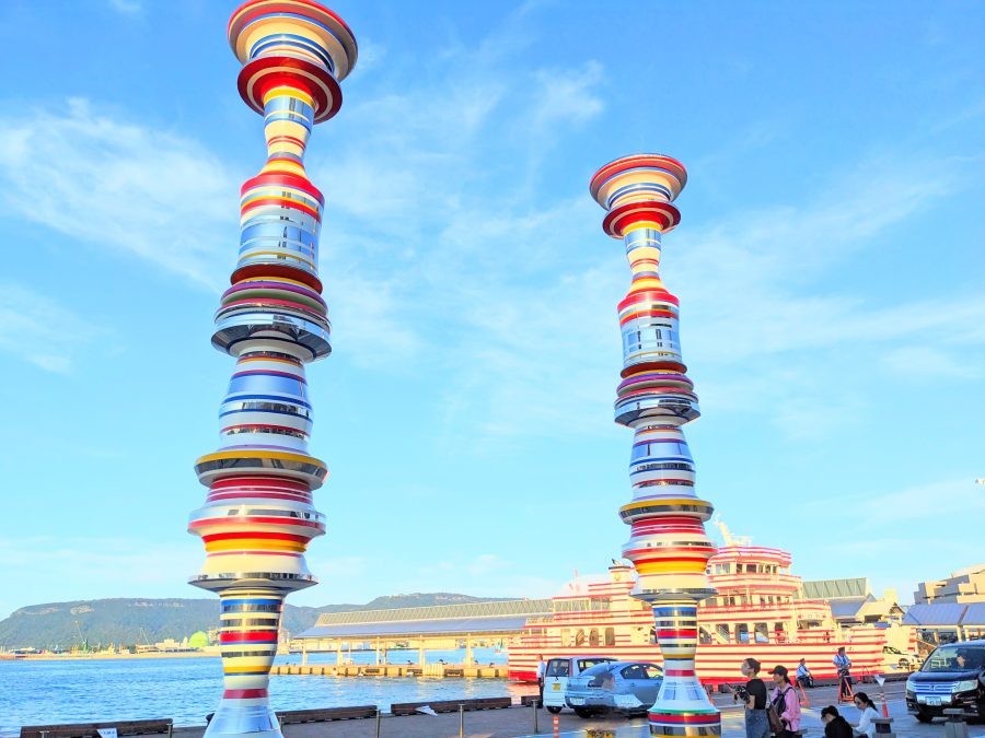 女木島・男木島行きのフェリーは正面に海を見たら一番右端の方にあります。真ん中らへんに建つ高松港のシンボルモニュメント『Liminal Air -core-』。このモニュメントよりも右の方です。迷わずに向かいましょう。