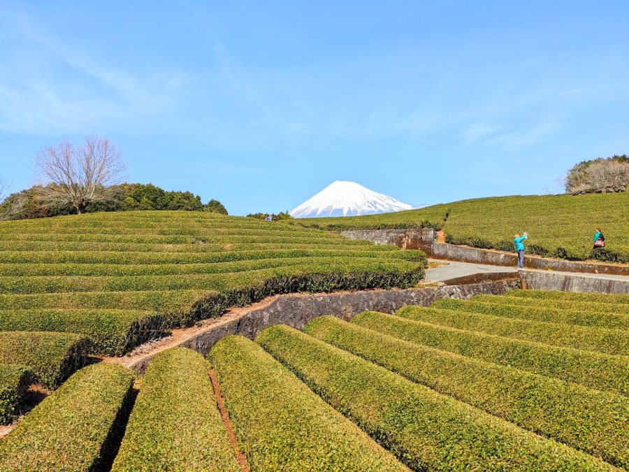 茶畑内は立入禁止なので、道路を歩きながら、茶畑と富士山の景色を楽しむのが基本です。茶畑自体は広大ですが、歩ける範囲は道路の一本道なので、写真を撮るだけならそんなに時間はかからないと思います。