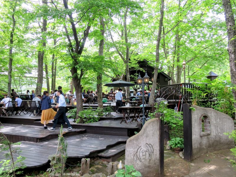 店内だけでなく、外には開放的なテラス席も用意されています。那須の自然を間近に感じながら食事ができる贅沢な空間で、特に天気の良い日は最高です。愛犬と一緒に利用できるのも、ペット連れの方には嬉しいポイント。