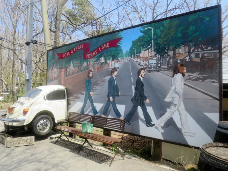 ペニーレインの敷地内には、ビートルズのアルバムジャケット『Abbey Road』を再現した大きな絵が設置されていて、多くの観光客がここで写真を撮っています。ビートルズファンでらなくても、このスポットは思わずテンションが上がること間違いなし!