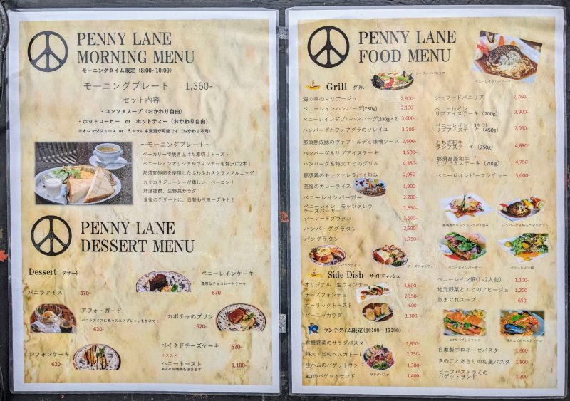 店名の「PENNY LANE」もそうですが、オーナーは大のビートルズ好き。外観も落ち着きあるクラッシックな英国風。新緑シーズンには自然と調和した避暑地らしい癒しの雰囲気を味わえます。
