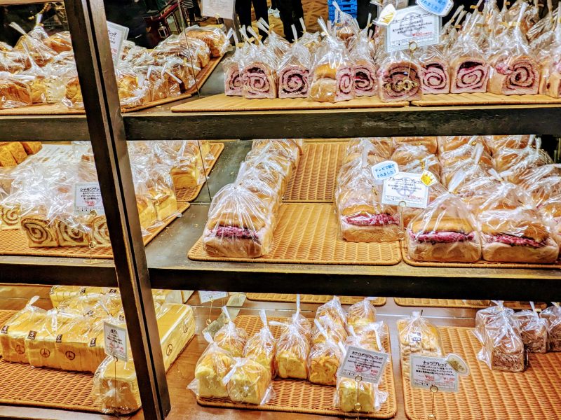 ブルーベリー以外にも、シナモンやデニッシュ、ナッツ、ショコラと様々な種類も用意。また、お店のロゴでもある、ピースマークの焼き印が押された「食パン一斤(350円)」もあります。
