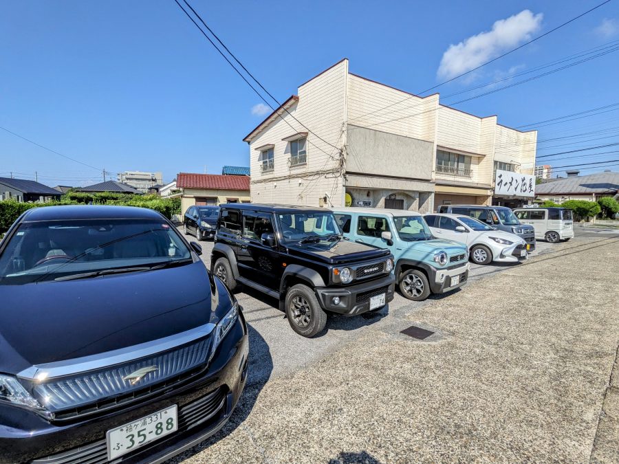 駐車場は店頭にあります。10台くらいは停められて料金は無料です。置いてだめなところには三角ポール等で案内がありますので、注意しましょう。