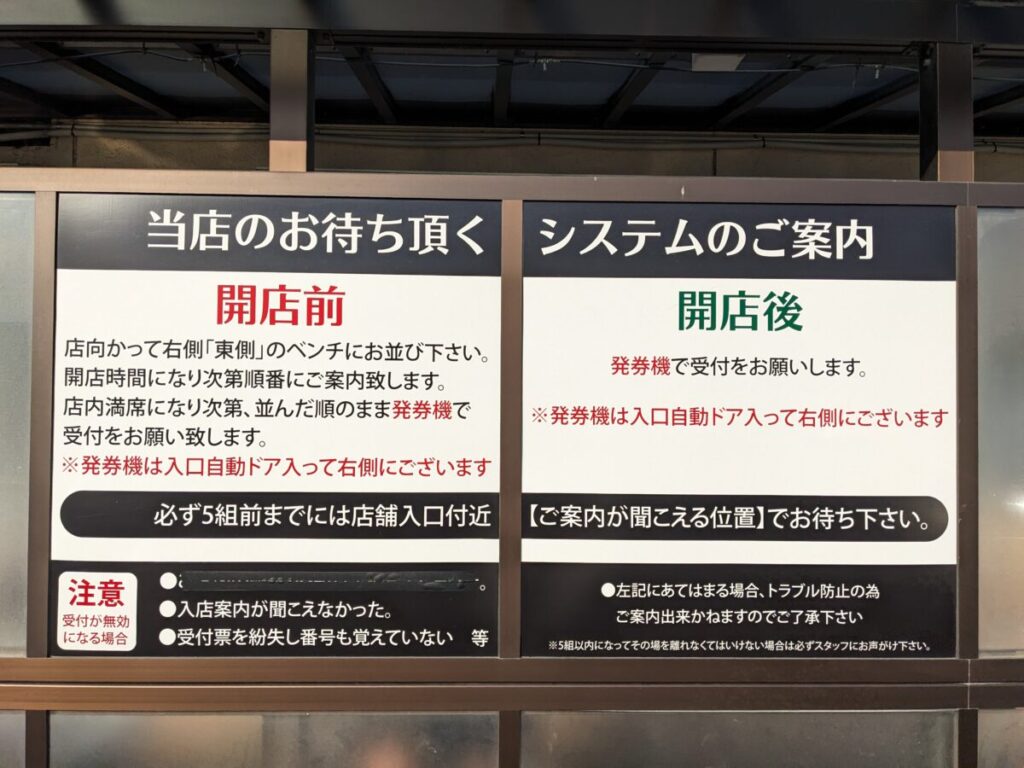 店頭には開店前と開店後の説明書きがあるので指示に仕方がいましょう。