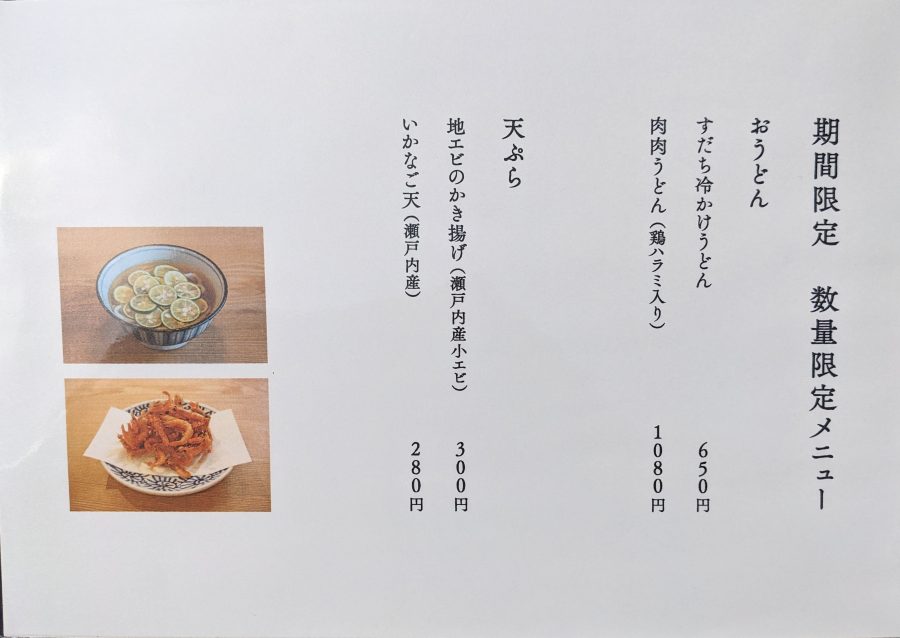 見た目も涼し気な「すだちの冷かけうどん」は暑い季節にぴったりのうどんです。