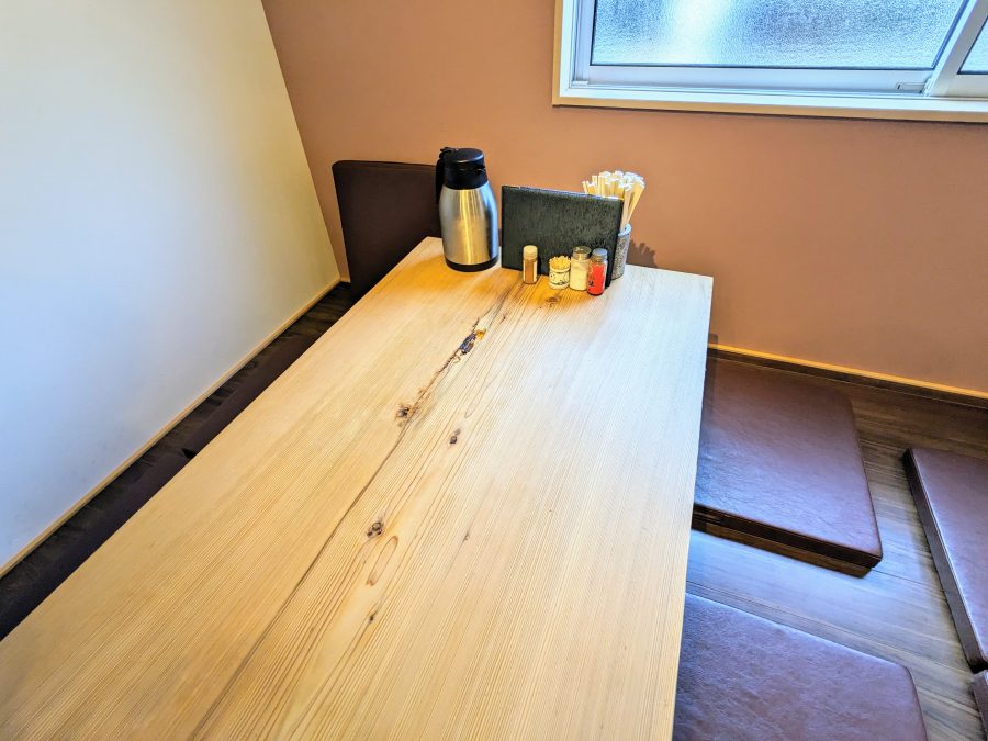 席はテーブルと座敷の2種類で、少人数から家族連れまで幅広く対応可能です。