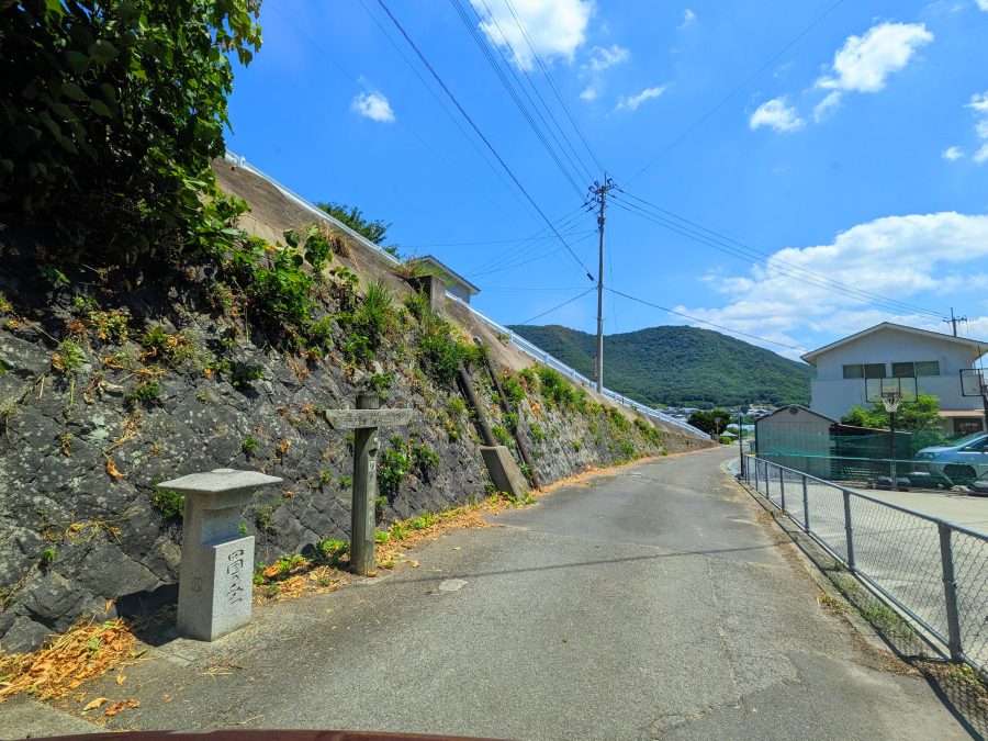 下宮の駐車場から歩いてすぐのところに、しめ縄石があります。ここをくぐると、いよいよ天空の鳥居への登山スタートです。