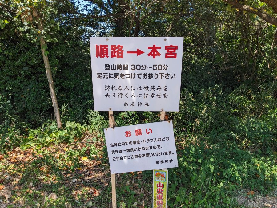 車を停める場所は「高屋神社下宮」の駐車場です。それ以外に駐車場はありません。