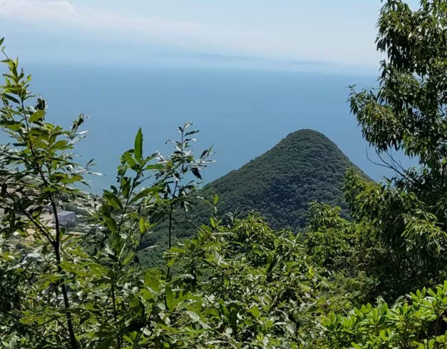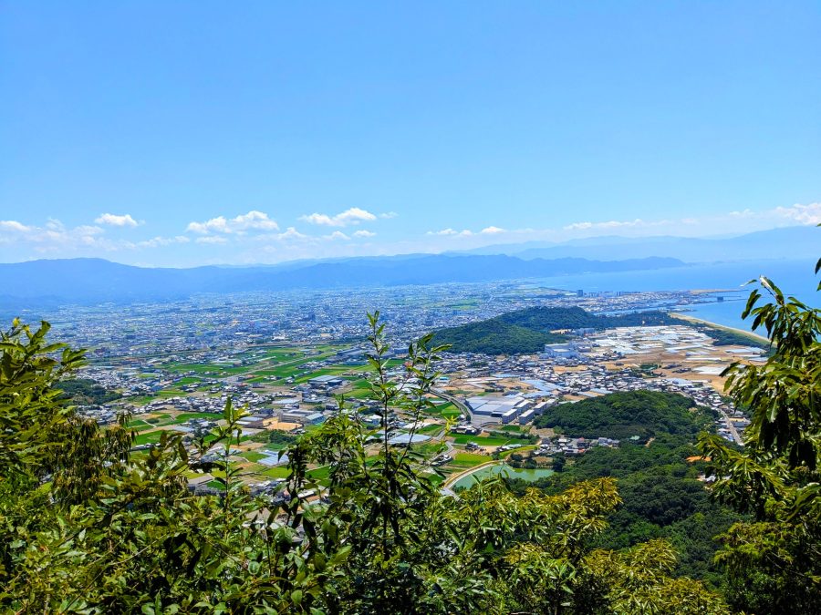 上から見下ろすと、右の方に先程の江甫草山(つくもやま)がちょこんと見えます。