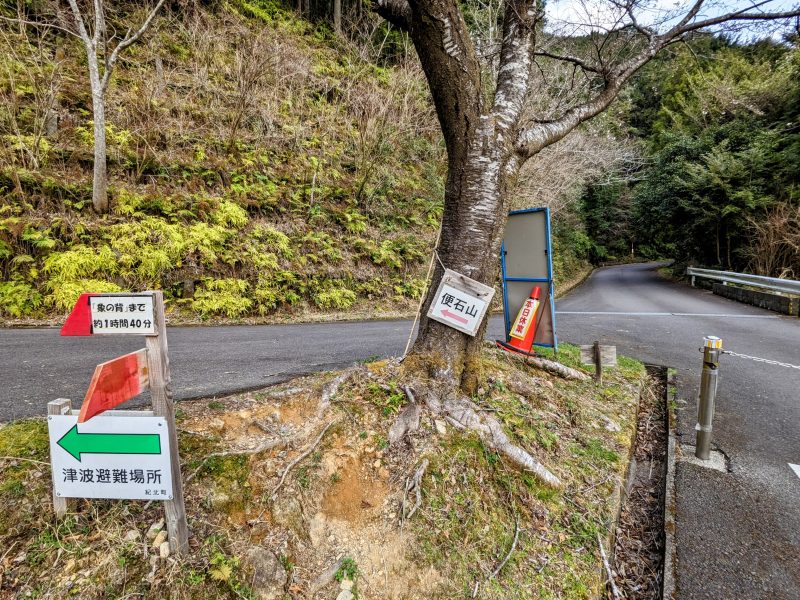 キャンプinn海山を出た先に便石山の登り口への案内がでてきます。