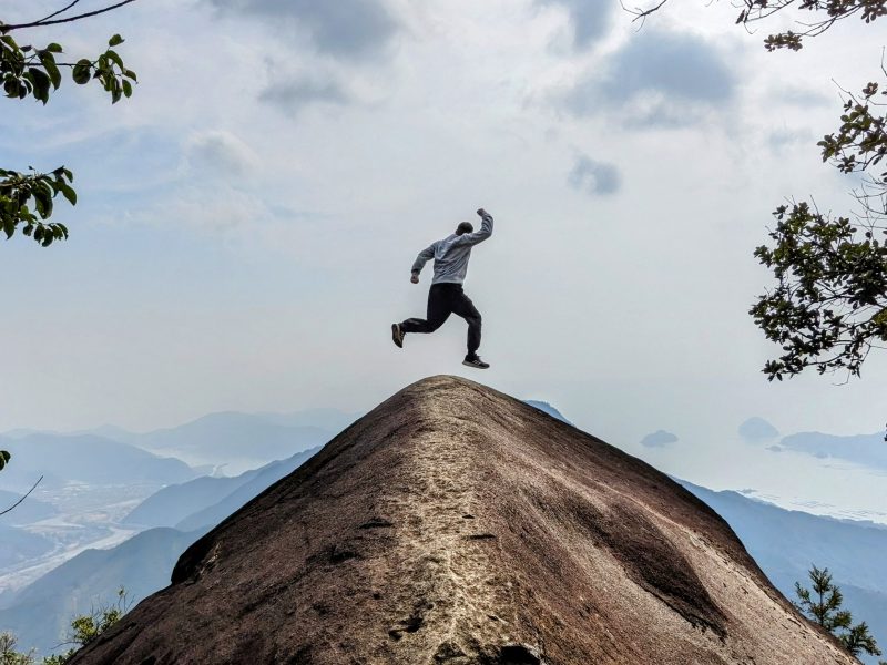 最後も急な階段を登り、1時間50分でようやく山頂に到着しました。かなりへとへとです。