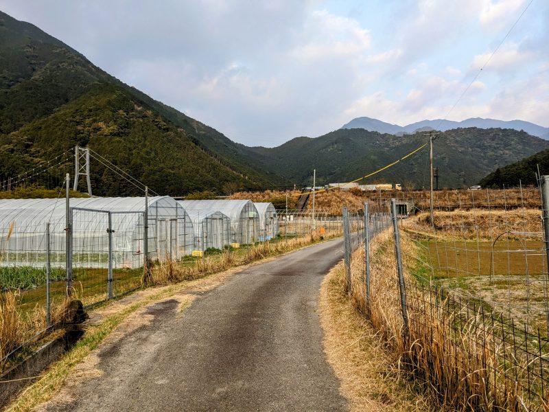 駐車場から農道のような道を歩き、銚子川にかかる橋を目指します。